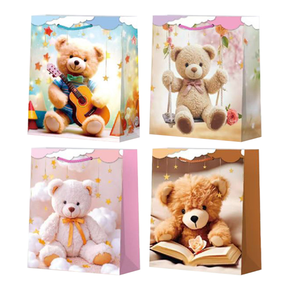 Papier Tragetasche "Happy Bear" mit Bärenmotiven mit Glitter 4-fach sort. 26 x 10 x 32 cm