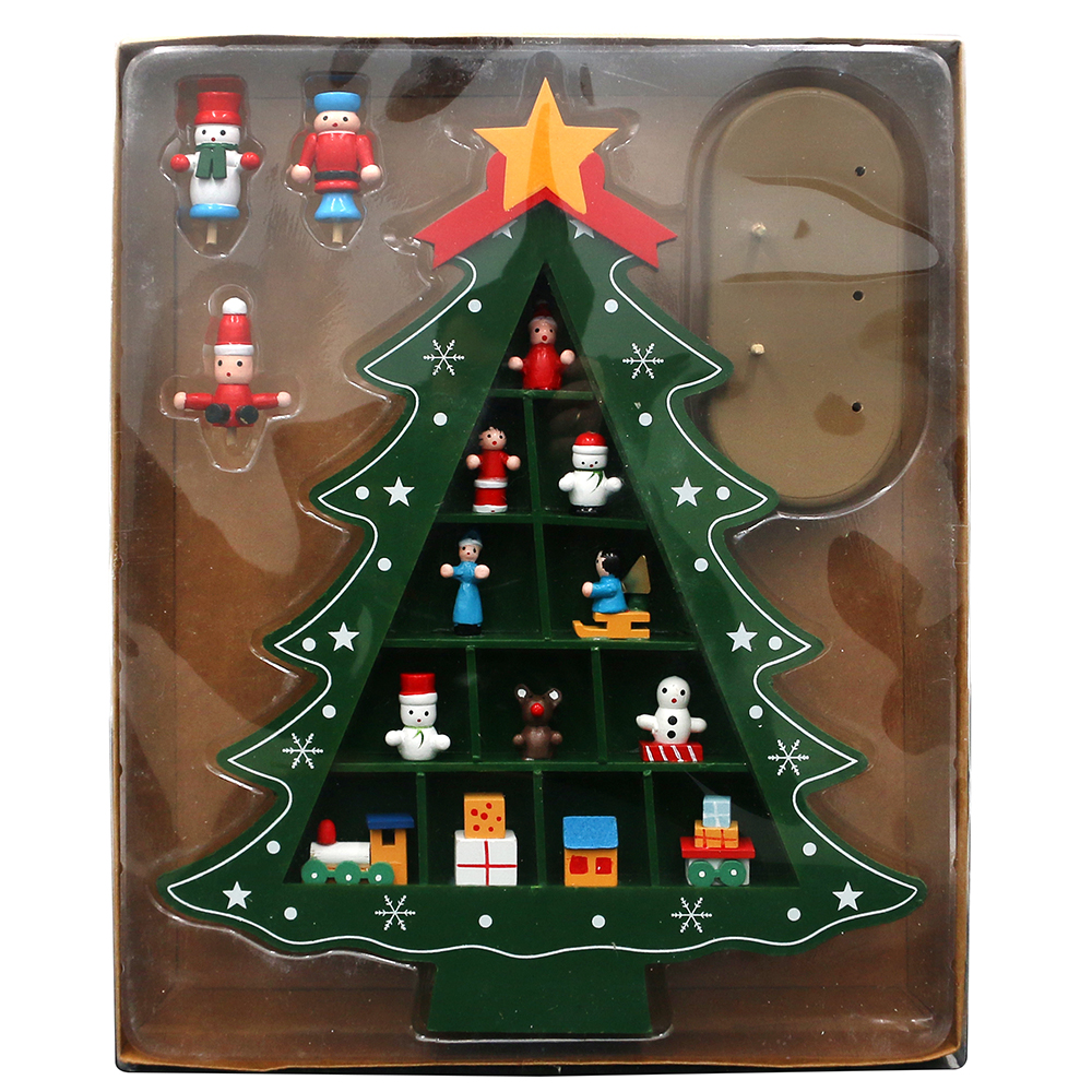 17er Set Holz Setzkasten "Tanne" grün 31,5 cm mit Baumbehang bunt 25,5 x 31,5 x 3 cm