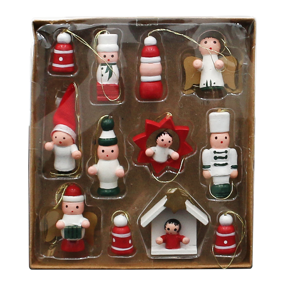 12er Set Holz Anhänger, bunt, Höhe 2 - 4 cm 12 x 13,5 x 2 cm