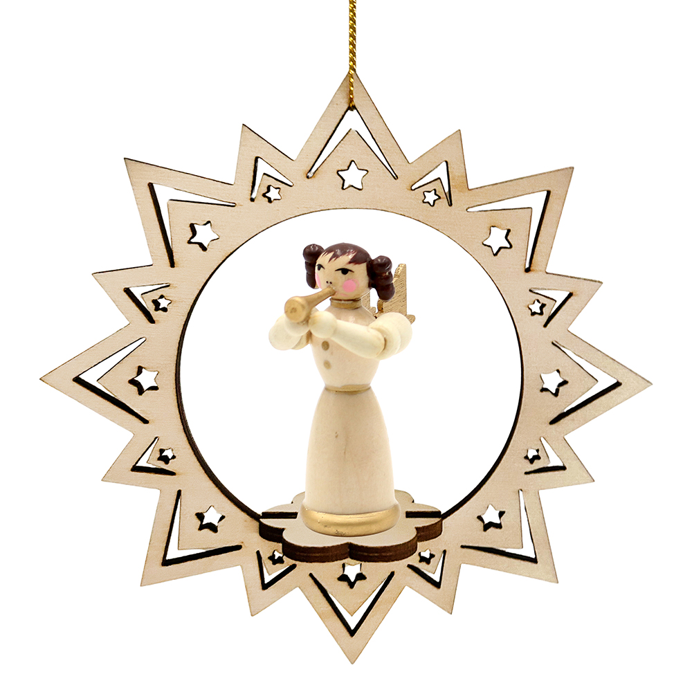 Holz Stern (Laserholz) mit Winterfigur "Engel" sortiert 9 x 2,5 x 11 cm