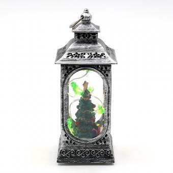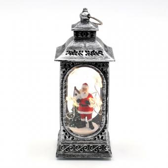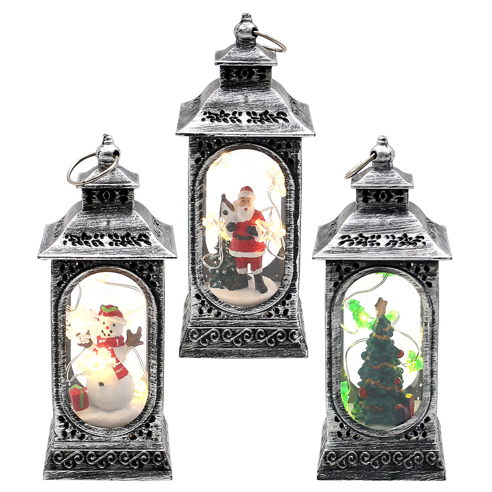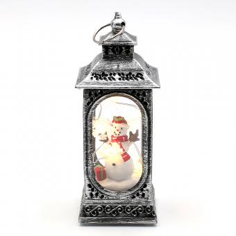 Kunststoff LED mini Laterne silbern mit Weihnachtsmann, Schneemann und Tannenbaum Motiven 3-fach sort. 6 x 6 x 13 cm LED;