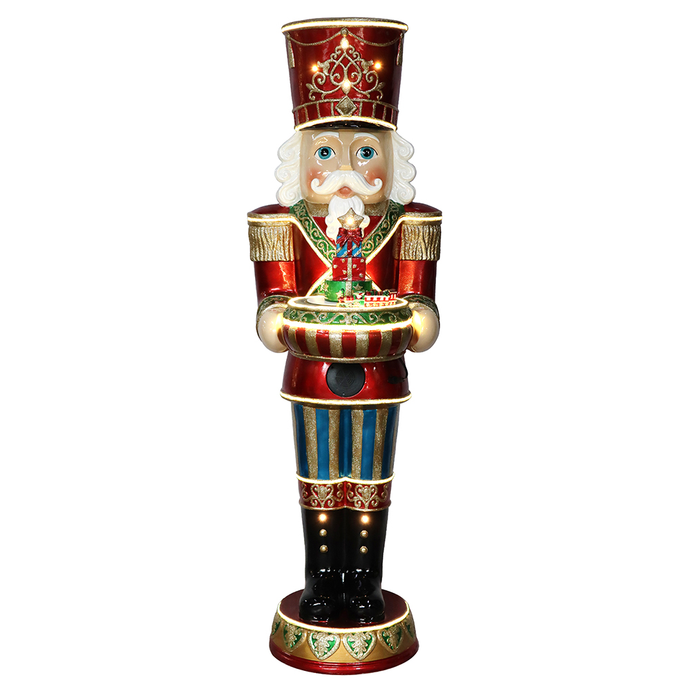 Polyresin Deko-Nussknacker mit Geschenk in der Hand 44,4 x 50,8 x 147,3 cm inkl. Adapter; LED; Sound; XXL;