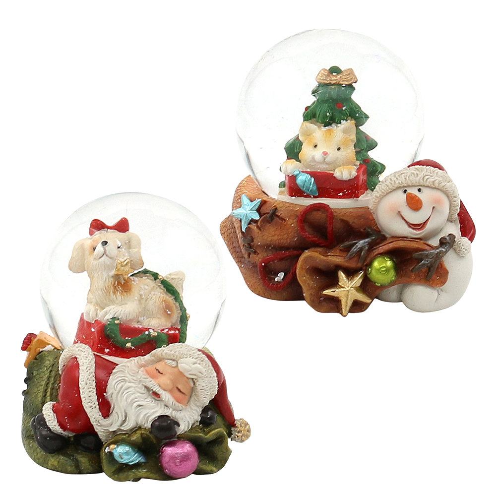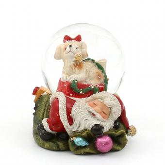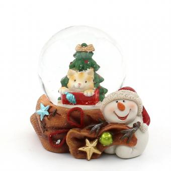 Polyresin Schneekugel "Hund und Katze" im Santa und Schneemann Sack 6,5 x 6 x 6,5 cm Ø 4,5 cm