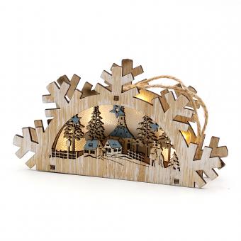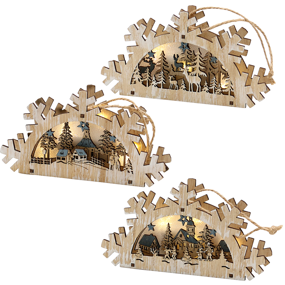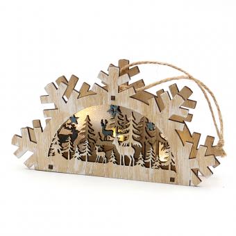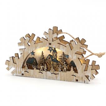 Holz Deko Szene "Wald- Stadt Motiv" zum anhängen mit LED Beleuchtung 3-fach sort. 14 x 3 x 7,5 cm Batteriebetrieb AAA; LED; 6h-Timer;