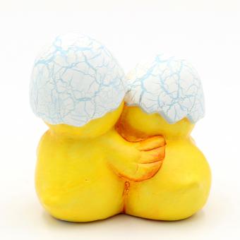 Ceramic Chick couple with eggshell on head 9,5 x 6,5 x 9,5 cm