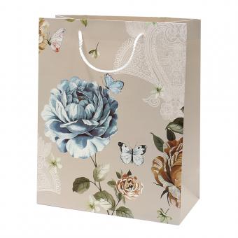 Paper carrying bag "flowers and butterflies" with glitter 4-asst 26 x 12 x 32 cm