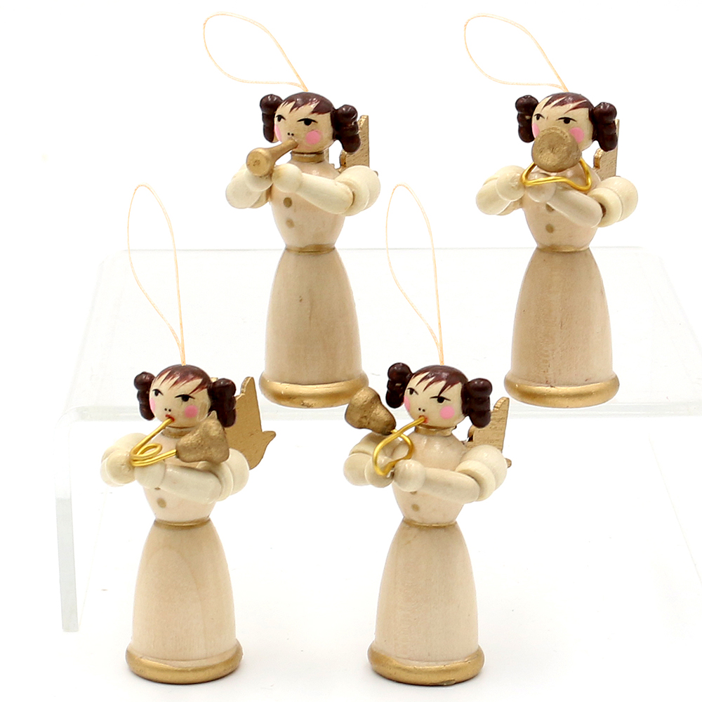 4pcs set Wooden "Angel Figures" with instruments with hanger 4-asst 3 x 2,5 x 5,5 cm