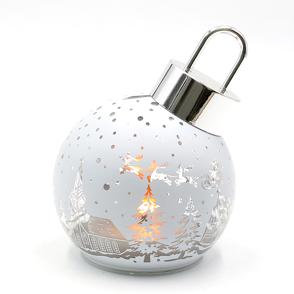 Glass White globe-lantern with city/forest motif 13 x 12 x 16 cm battery operation AAÿÿ; LED; 6h-Timer;