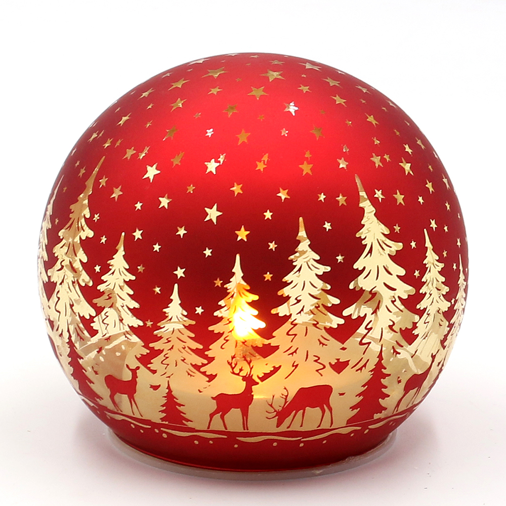 Glass red ball with forest motif 12 x 12 x 11 cm battery operation AAÿÿ; LED; 6h-Timer;