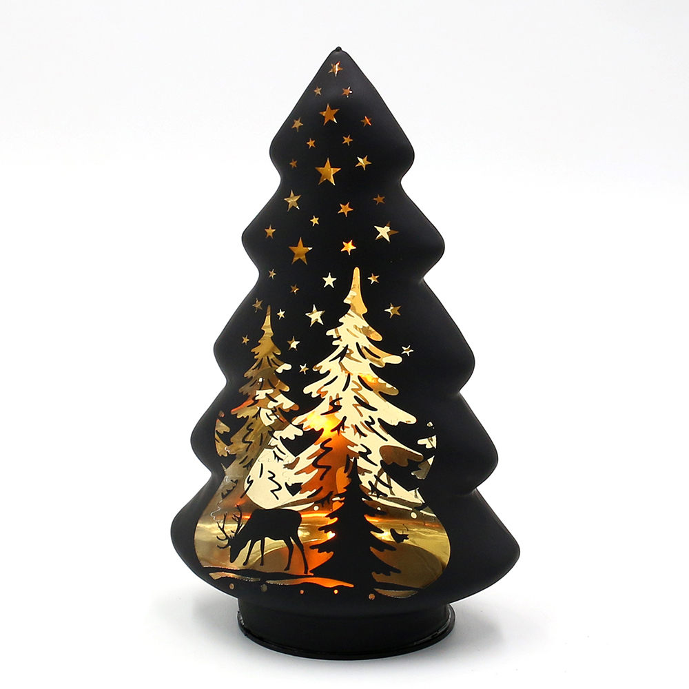 Glass black tree with forest motif 11 x 8,5 x 19 cm battery operation AAAÿÿ; LED; 6h-Timer;