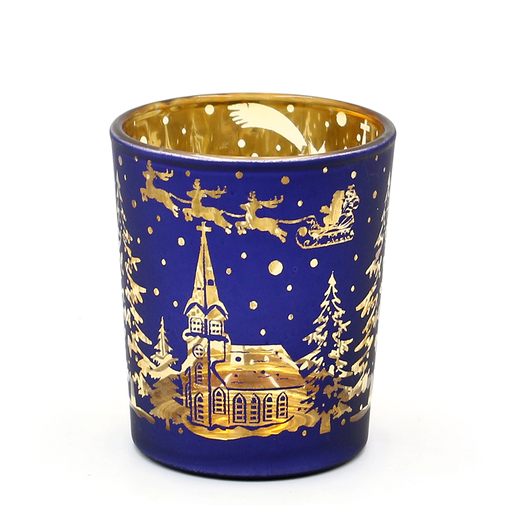 Glass Tealight cup blue with city / forest motif 5,5 x 5,5 x 6,8 cm
