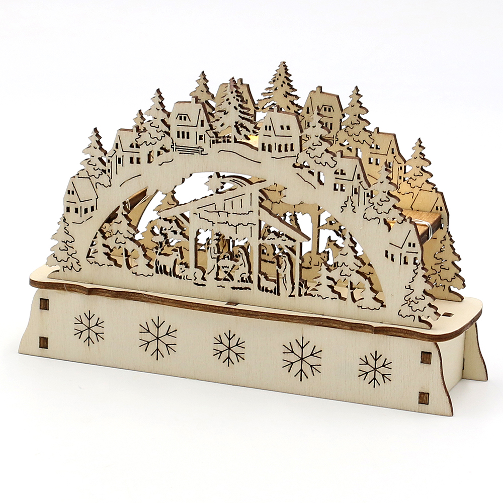 Wooden Mini candle arch "Nativity" (laser-cut wood) 15 x 5 x 10 cm battery operation AAAÿÿ; LED; 6h-Timer;