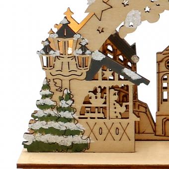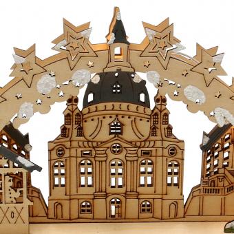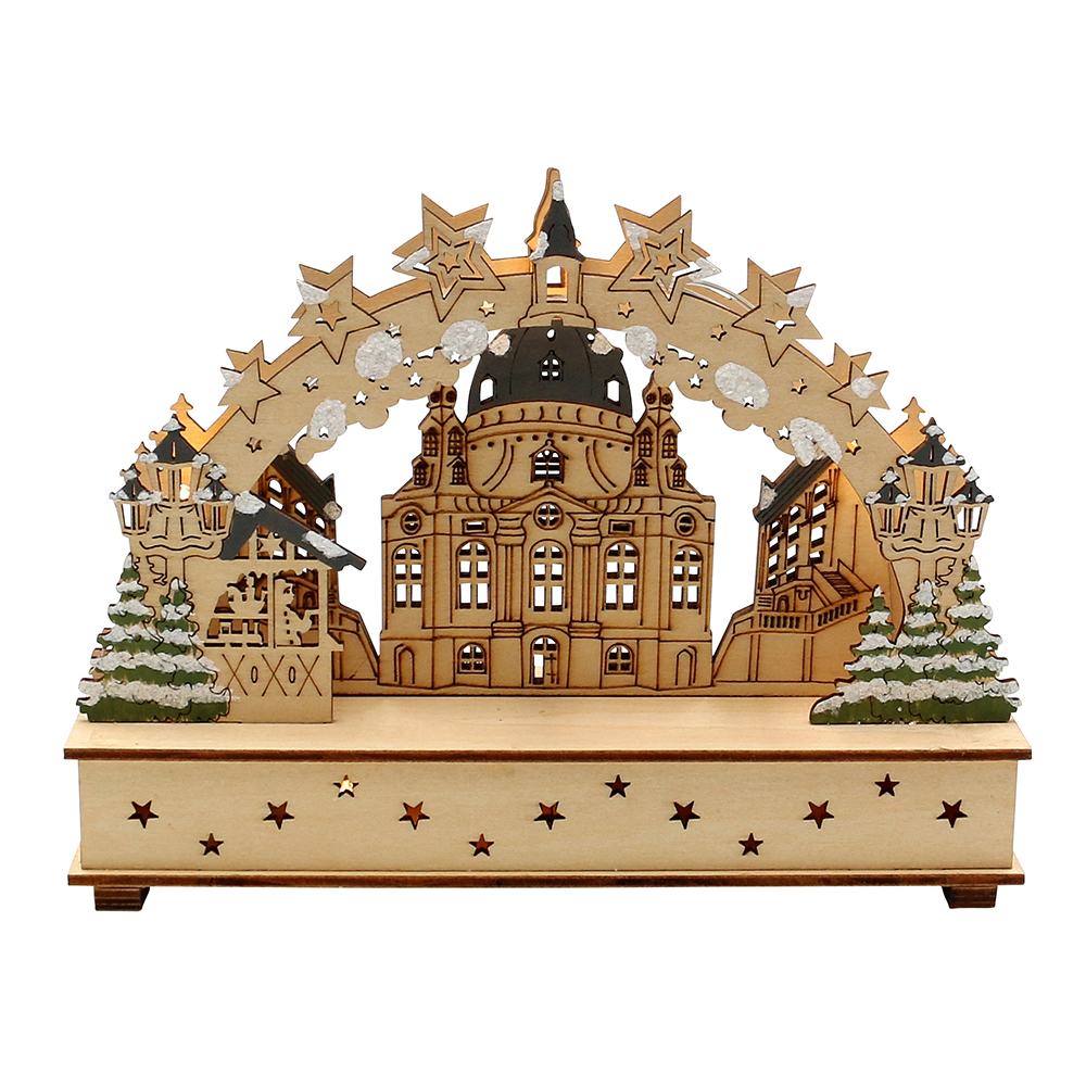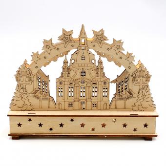 Wooden Mini candle arch “Frauenkirche” brown / natural (laser wood) 20 x 6 x 15 cm battery operation AAÿÿ; LED;