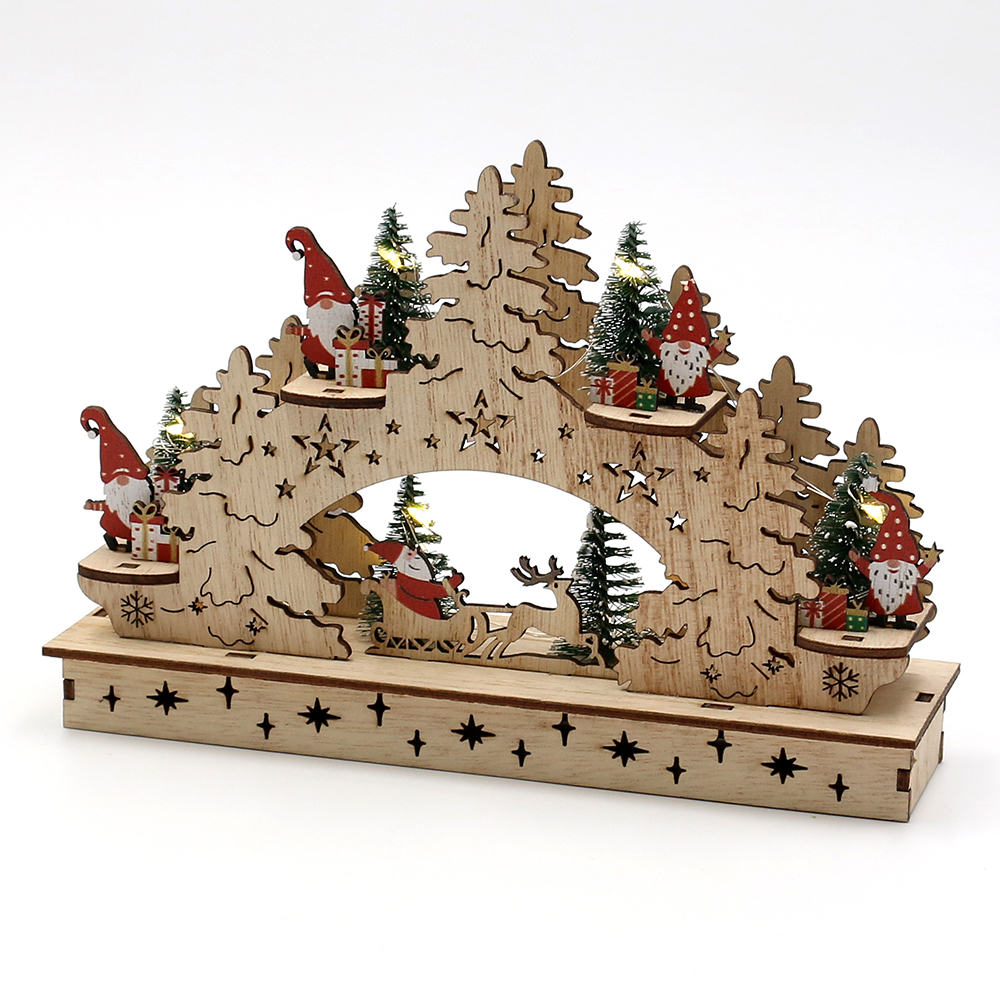Wooden Mini candle arch "Santa and Elves" colorful 20,5 x 7 x 15,5 cm battery operation AAAÿÿ; LED; 6h-Timer;