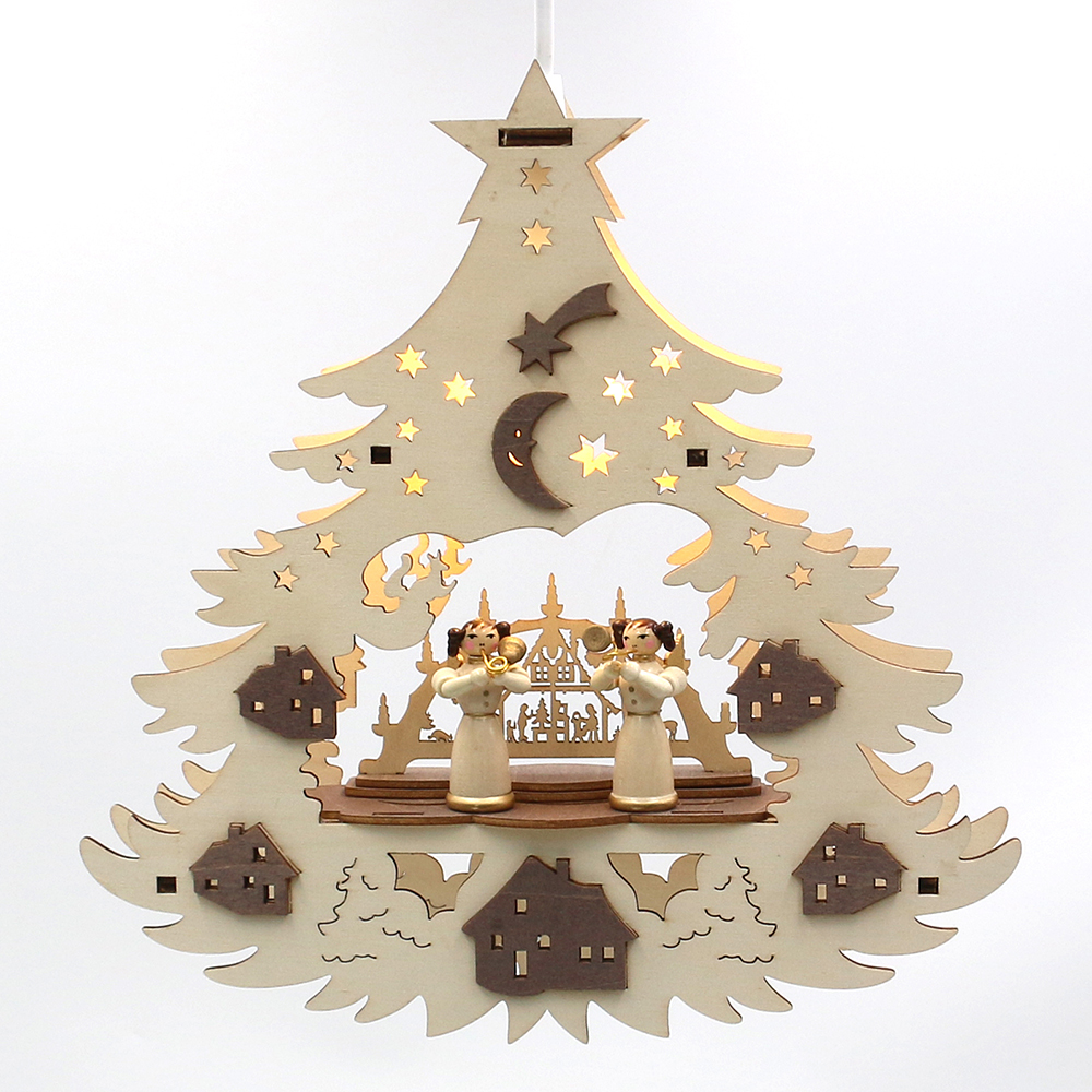 Wooden Window decoration "Angel figures" with candle arch, natural/brown 27,5 x 4 x 29 cm 230 V cable; LED; E14;