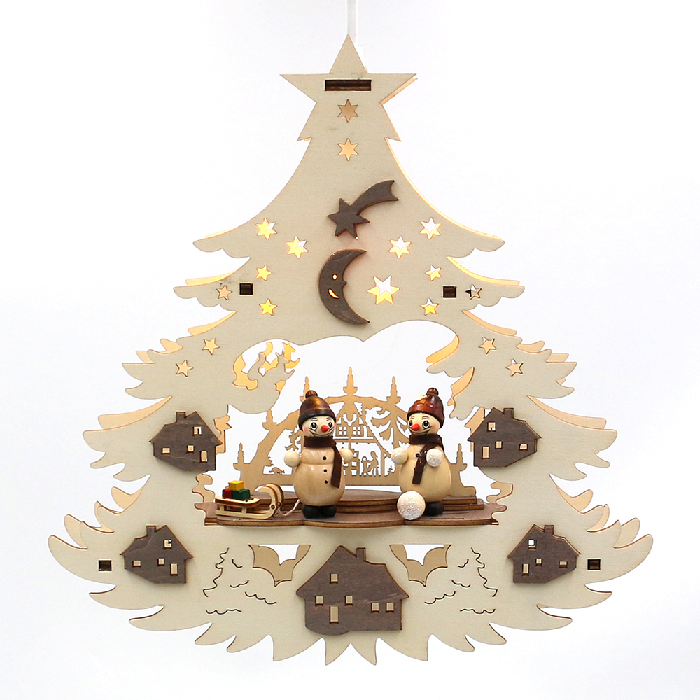 Wooden Window decoration "Snowman Figures" with candle arch, natural/brown 27,5 x 4 x 29 cm 230 V cable; LED; E14;