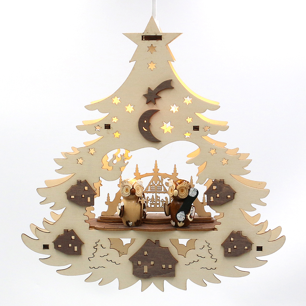 Wooden Window decoration "Owl Figures" with candle arch, natural/brown 27,5 x 4 x 29 cm 230 V cable; LED; E14;