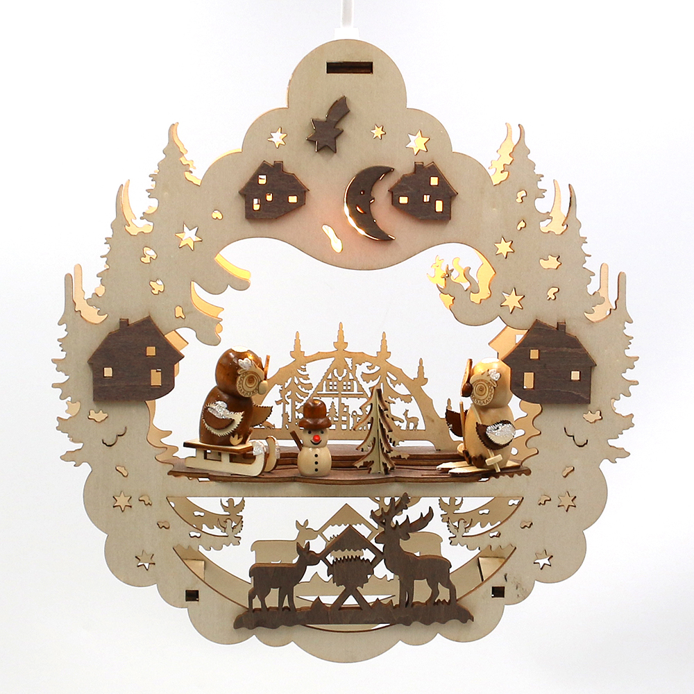 Wooden Window decoration tree "Owl figures" with candle arch natural/brown 27,5 x 4 x 29 cm 230 V cable; LED; E14;