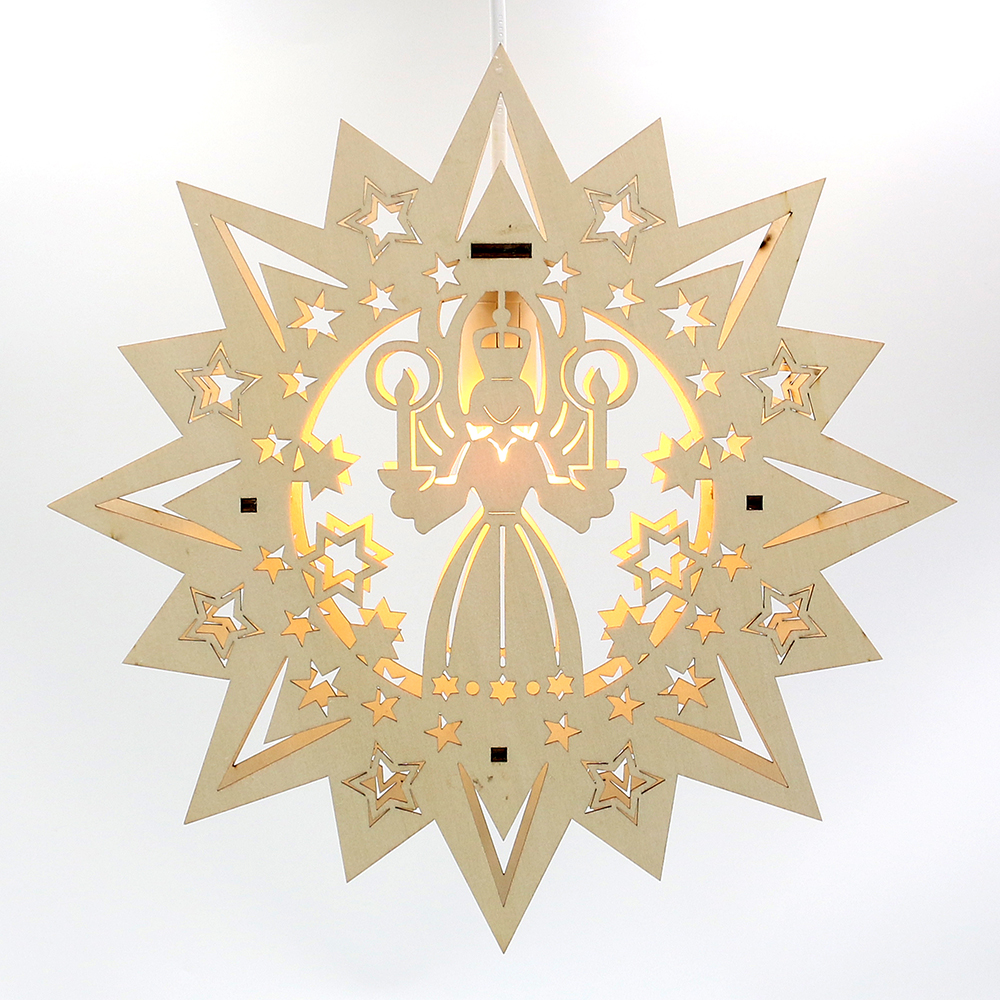 Wooden Window picture star "Angel" (laser wood) 31 x 5 x 31 cm 230 V cable; LED; E14;