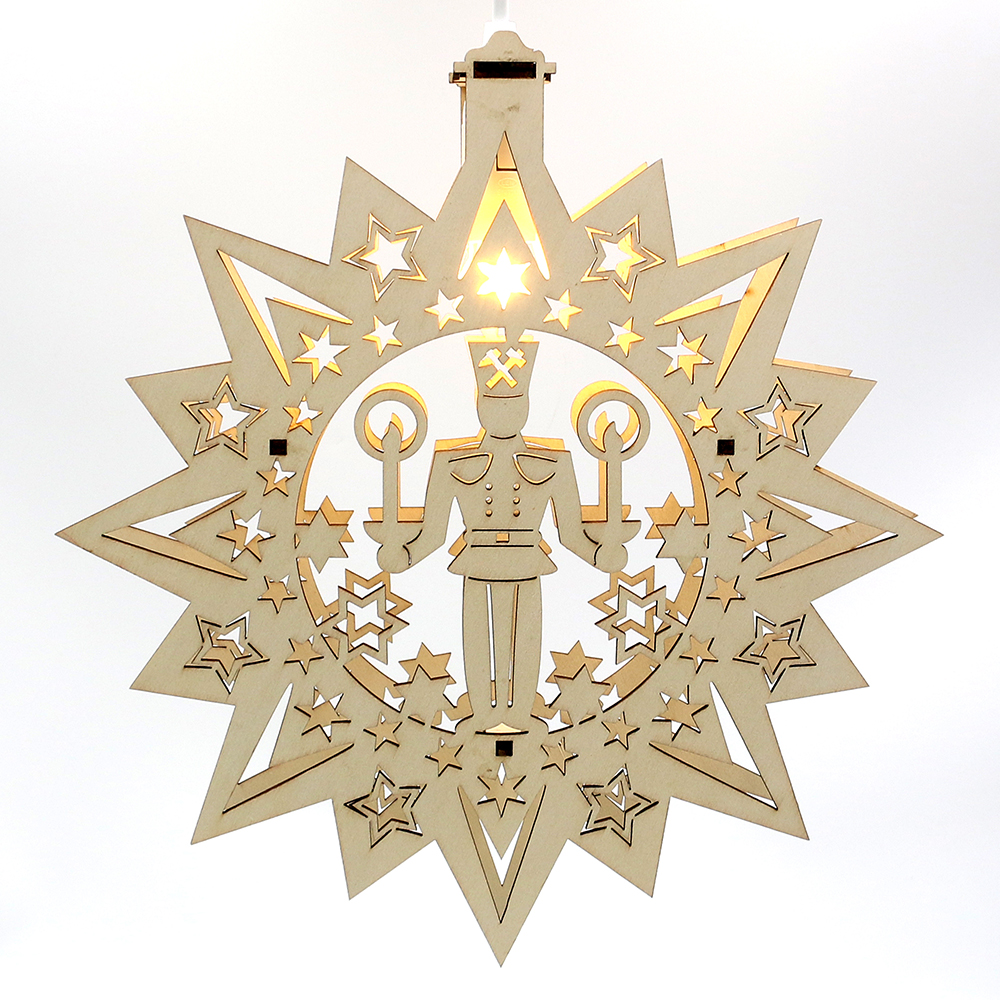 Wooden Window picture star "Miner" (laser wood) 31 x 5 x 31 cm 230 V cable; LED; E14;