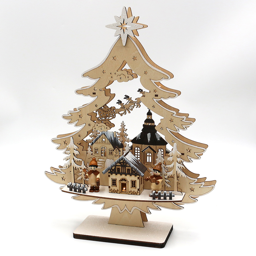 Wooden "Tree" with forest scene and "Calling Figures" (Laser Wood) 30 x 9 x 38,5 cm battery operation AAÿÿ; LED;