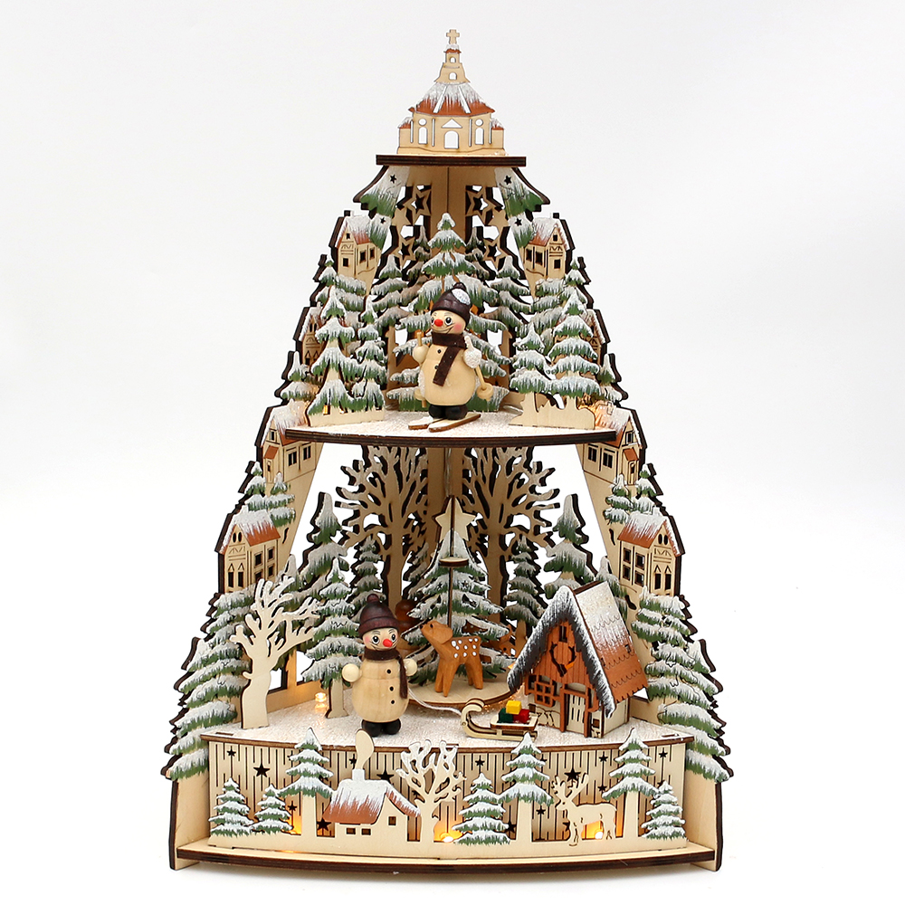 Wooden Laser-cut tree, colorful "forest and city scene" with snowman figures (laser-cut wood) 23,5 x 13,5 x 35,5 cm battery operation AAÿÿ; LED; movement;