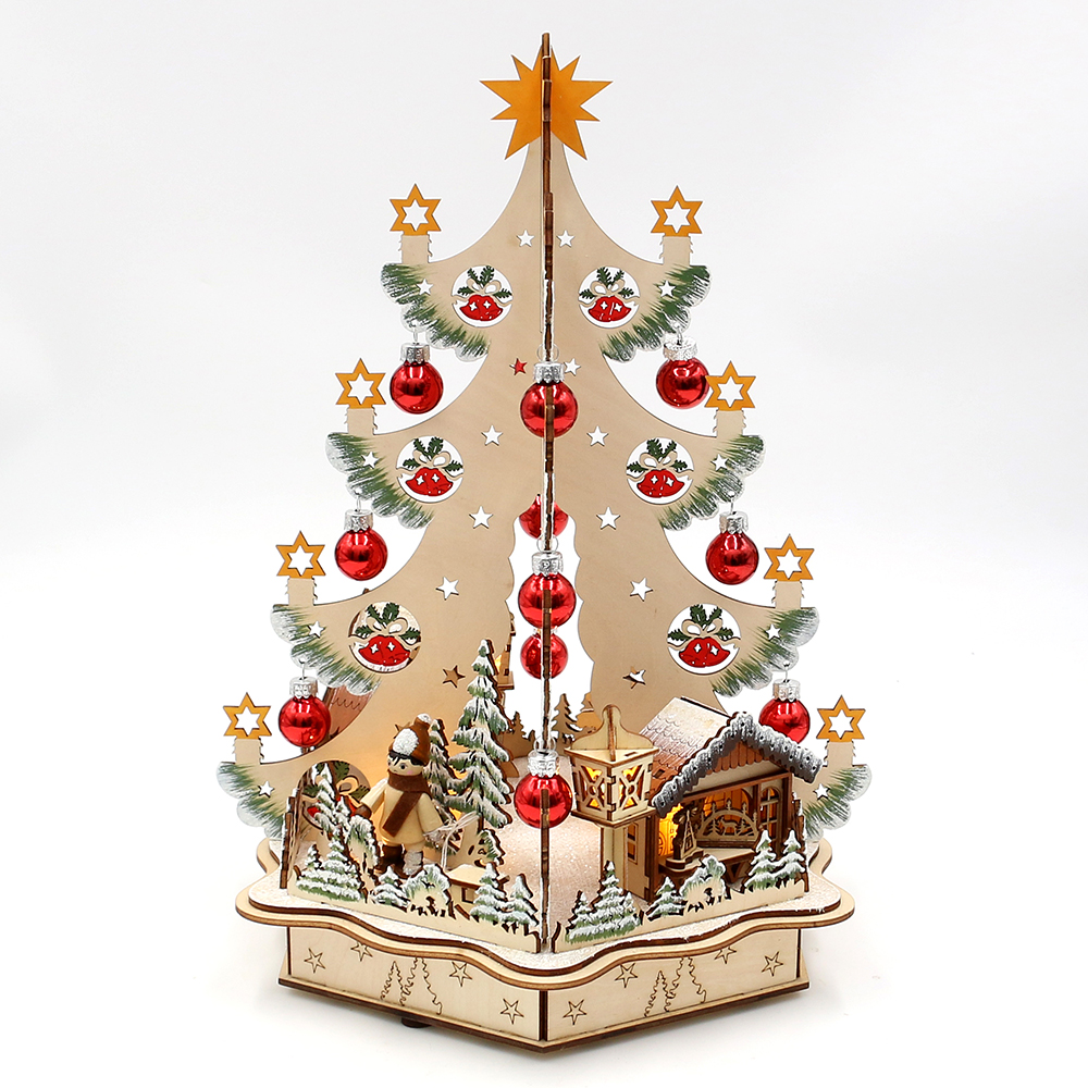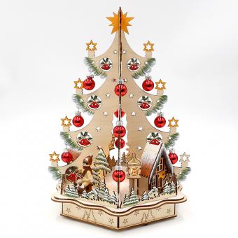 Wooden Christmas tree "city scene" with red baubles and winter figures (laser-cut wood) 25 x 22 x 35,5 cm battery operation AAÿÿ; LED;