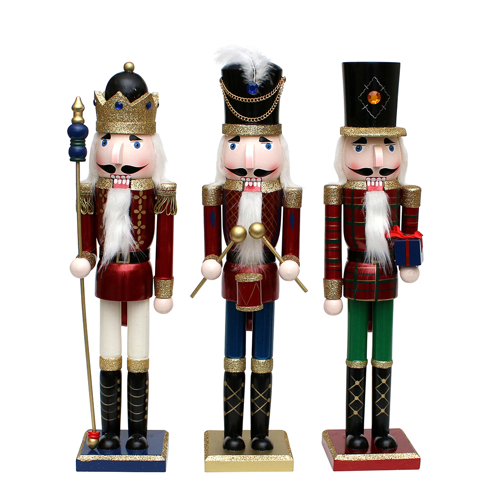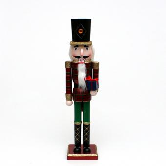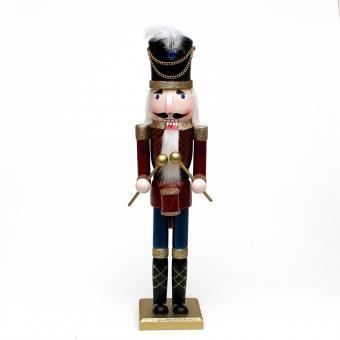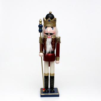 Wooden nutcracker red big with golden glitter 3-asst 12,5 x 11 x 50 cm