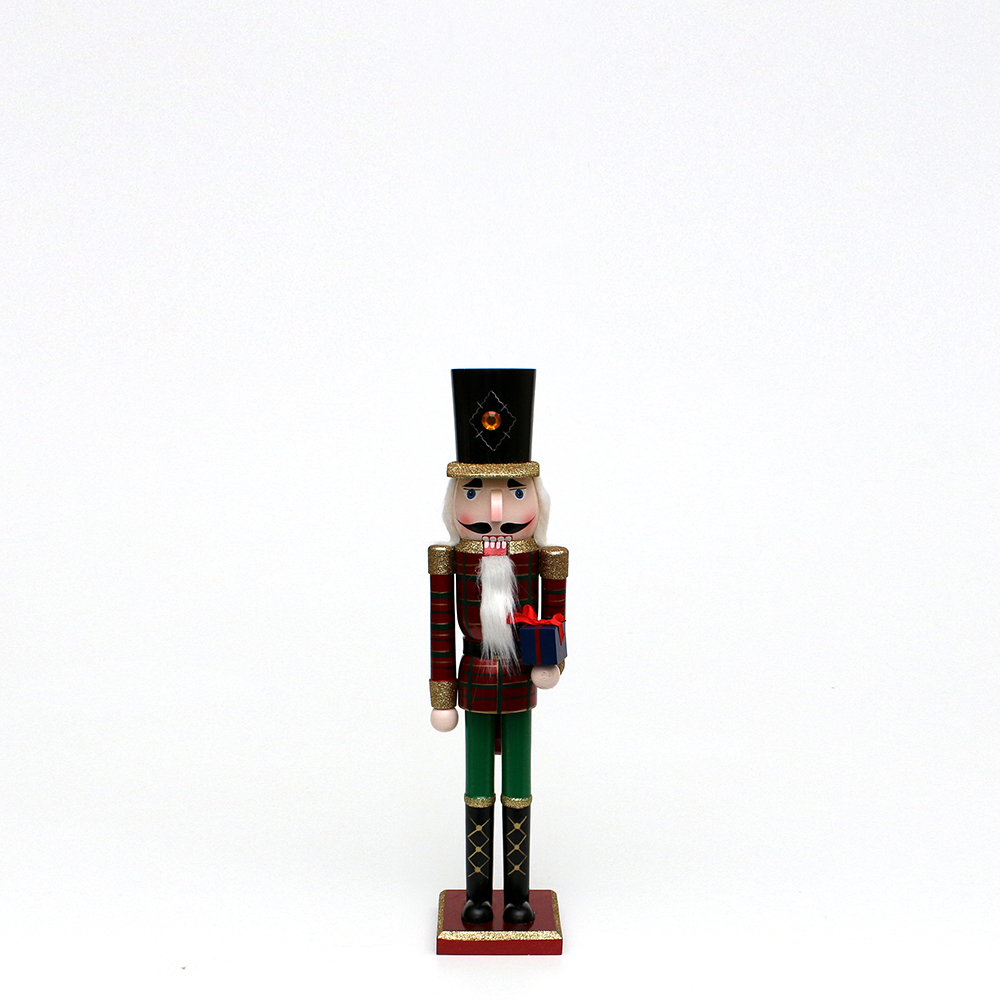 Wooden nutcracker red small with golden glitter 9,5 x 7 x 25,5 cm