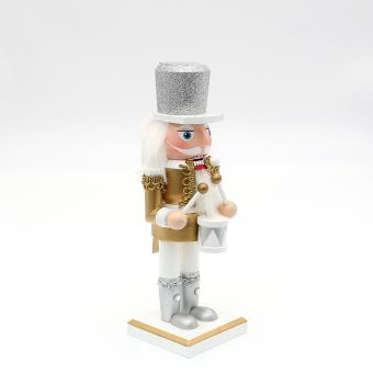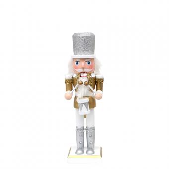 Wooden Nutcracker "Drummer" with glitter, silver / white, gold / white 7 x 6,5 x 20 cm