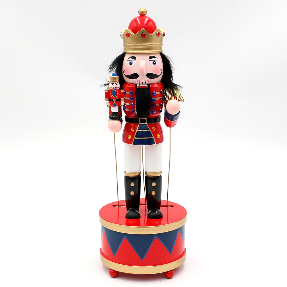 Wooden Nutcracker "King" red on music box with small nutcracker on arm 10,5 x 10,5 x 31 cm movement; music box Nutcracker Suite;