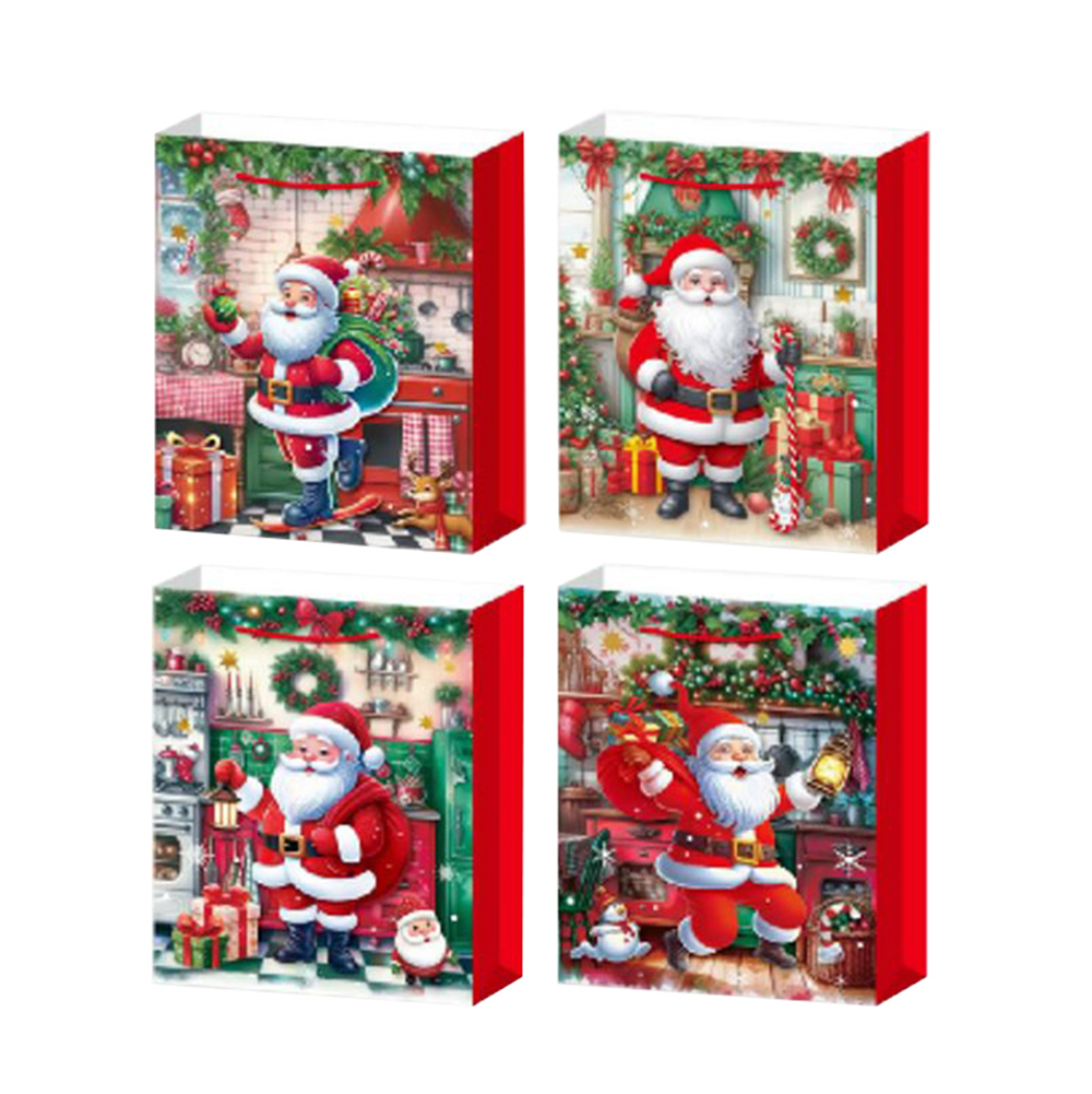 Paper Tote bag with Santa Claus motifs and glitter 4-asst 18 x 8 x 24 cm
