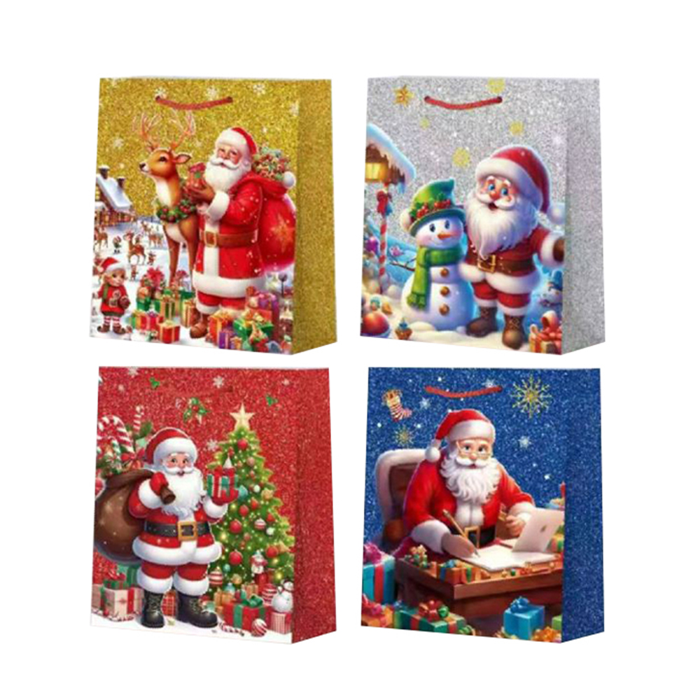 Paper Colorful tote bag with Santa Claus motifs and glitter 4-asst 18 x 8 x 24 cm