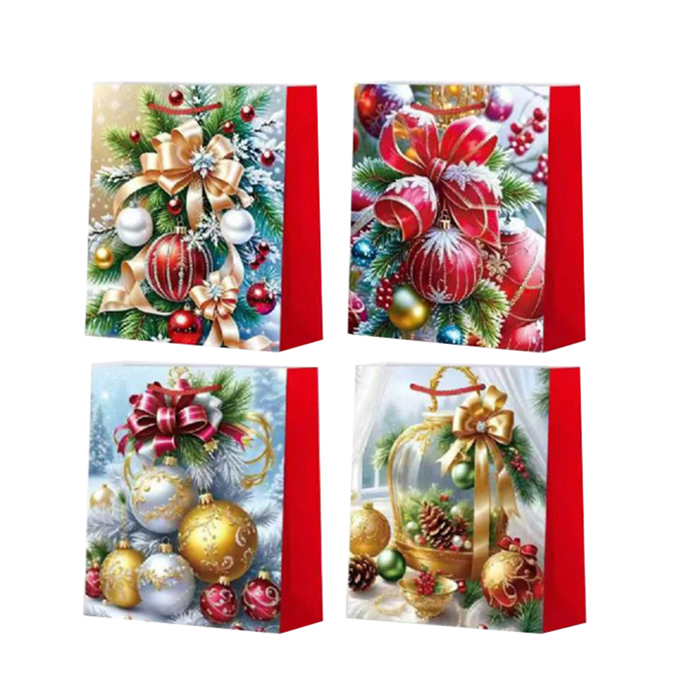 Paper Tote bag with Christmas bauble motifs and glitter 4-asst 18 x 8 x 24 cm