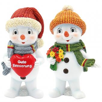 Polyresin Snow children with hat and scarf red/orange grey/green "Get well soon" 2-asst 7 x 5 x 11,5 cm