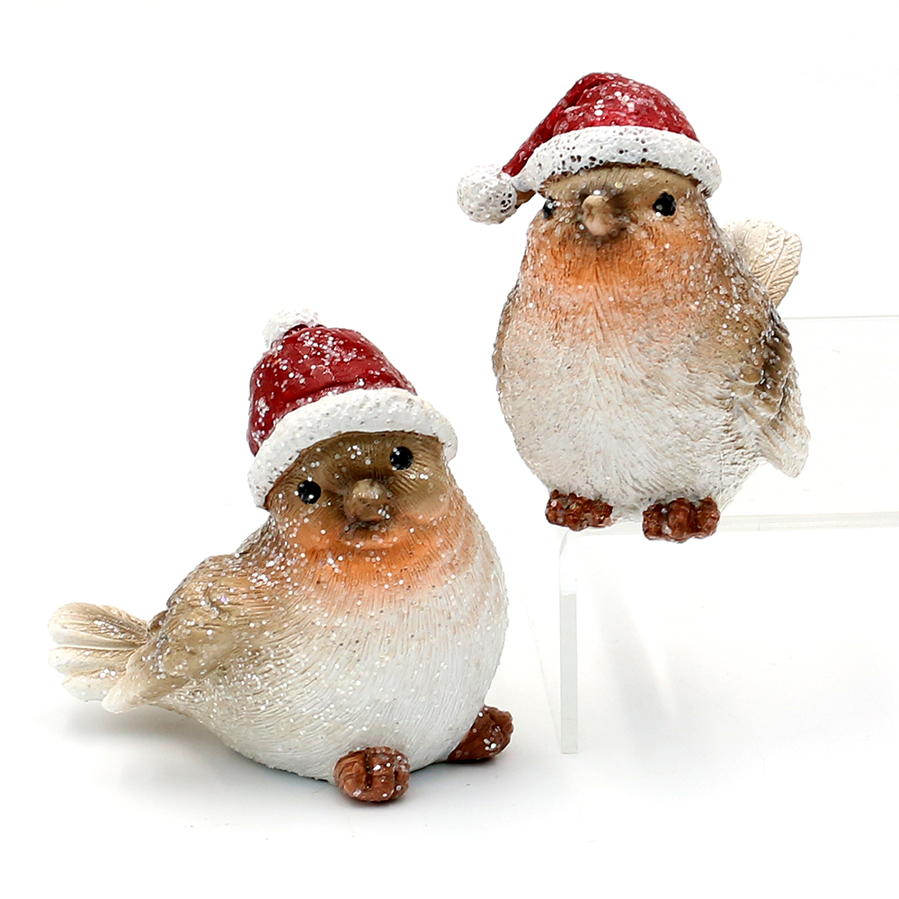Polyresin Birds wearing Santa hats, with glitter 2-asst 6 x 5 x 11,5 cm