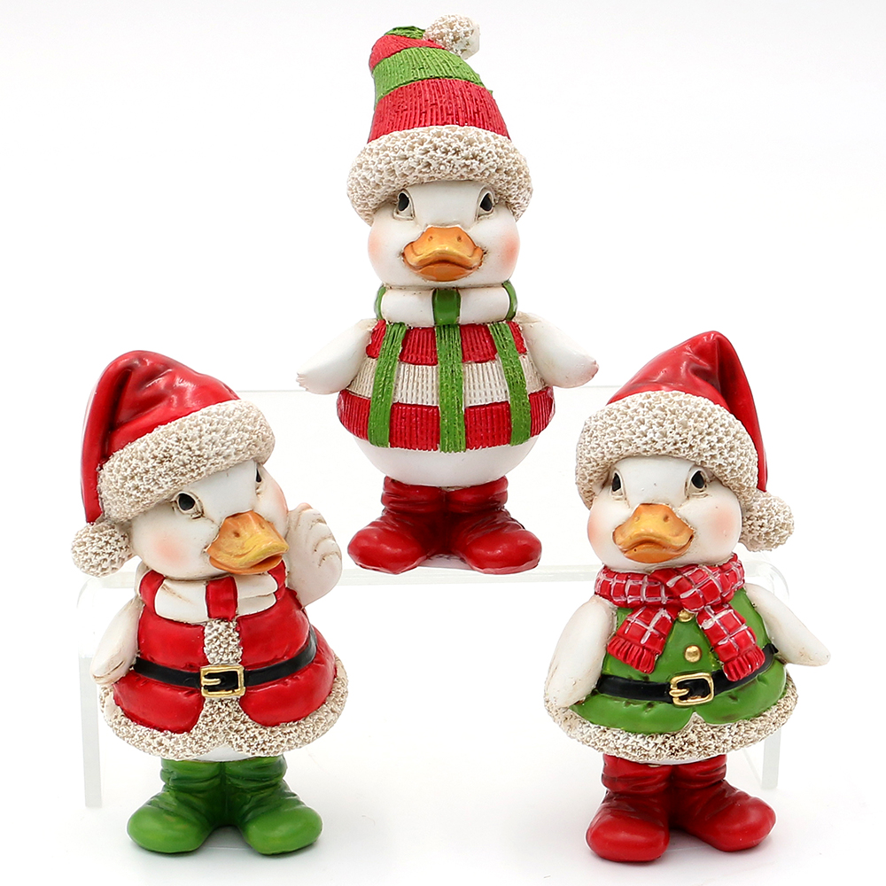 Polyresin Ducks with Santa hat and scarf red/green 3-asst 5 x 4,5 x 8,5 cm