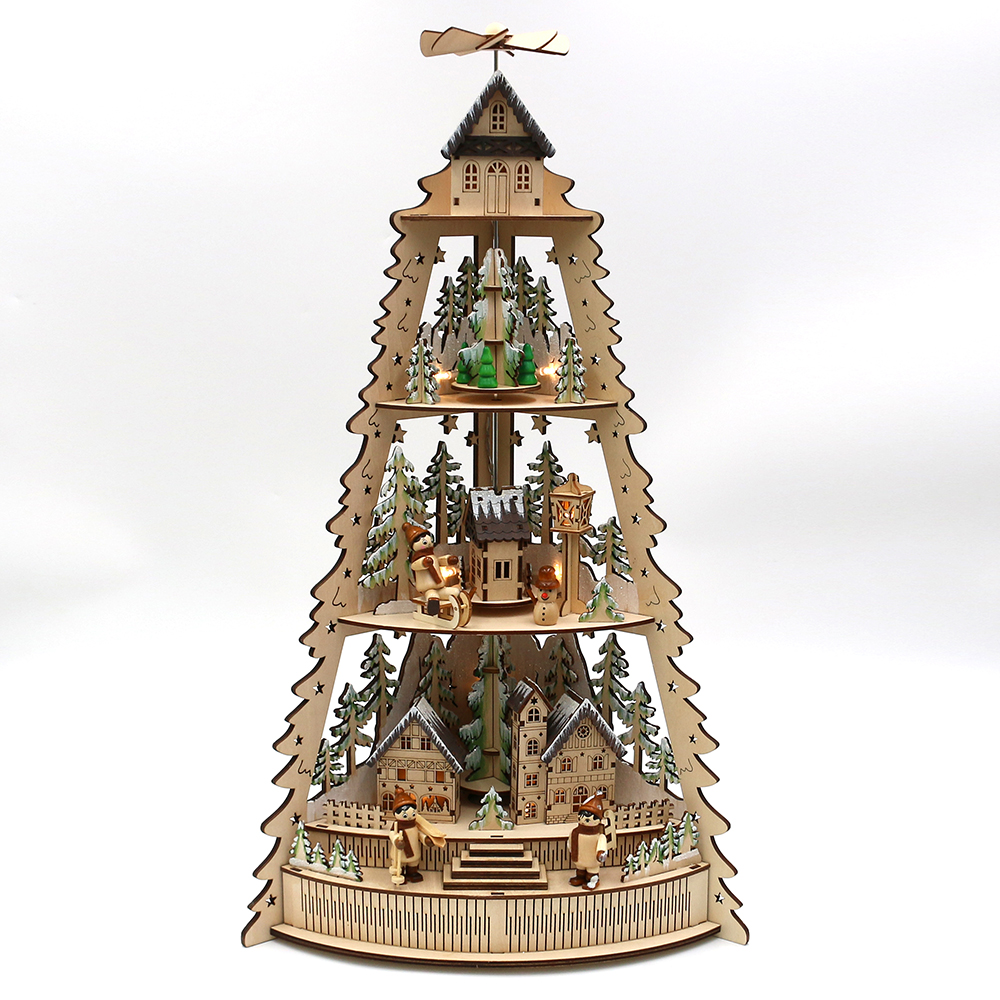Wooden "Tree Forest Scene" with rotating pyramid and "Winter Figures" (Laser Wood) 31 x 17 x 54 cm battery operation AAÿÿ; incl. adapter 4.5 V; LED; movement;