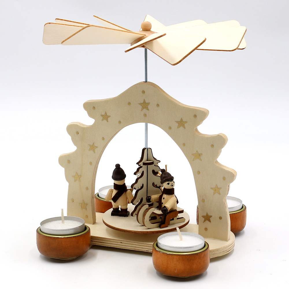 Wooden Tea light pyramid "Forest" with winter figures, natural, for 4 tea lights 16,5 x 16 x 21 cm