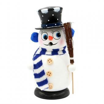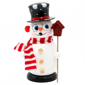 Wooden Smoking snowman "Toni" large with knitted scarf, colorful 11 x 10 x 25 cm