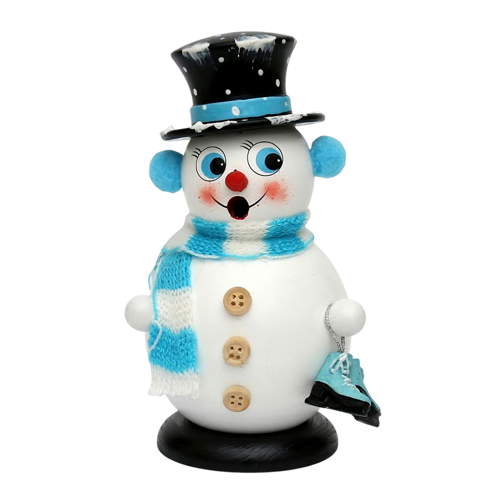 Wooden Smoking snowman "Bobby", light blue / white 9 x 8 x 16 cm