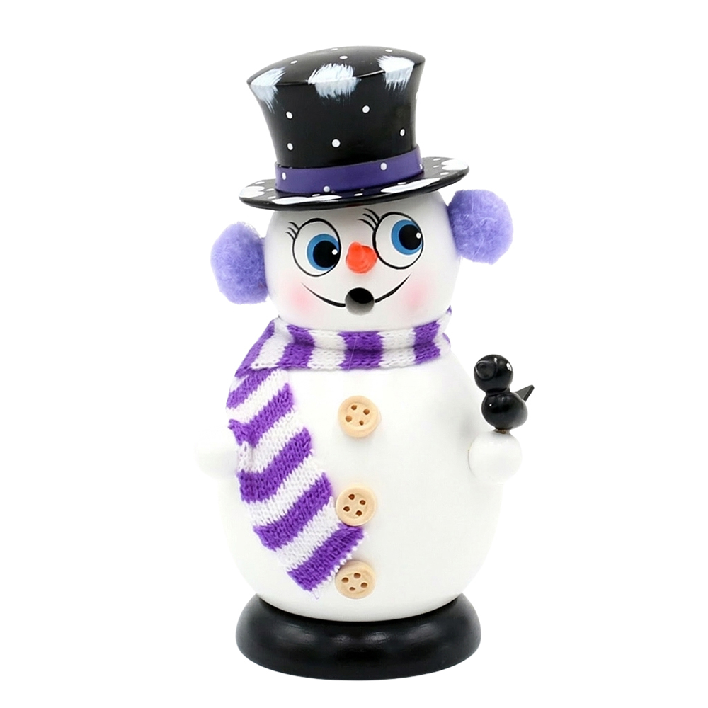 Wooden Smoking snowman "Bobby", purple / white 9 x 8 x 16 cm