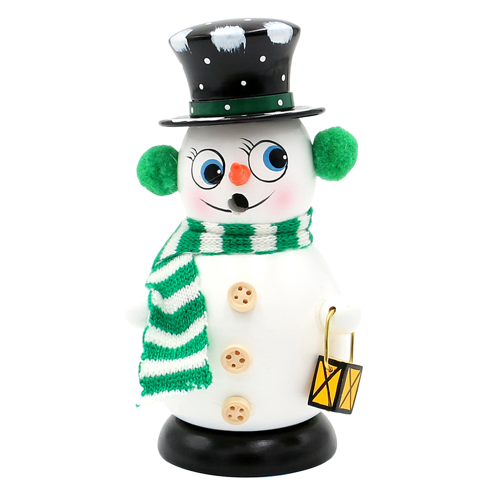Wooden Smoking snowman "Bobby", green / white 8 x 8 x 16 cm