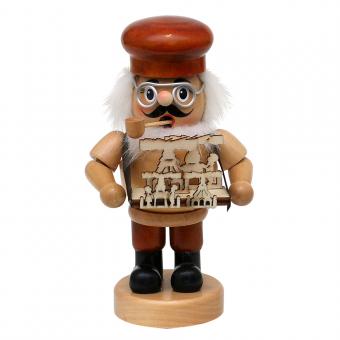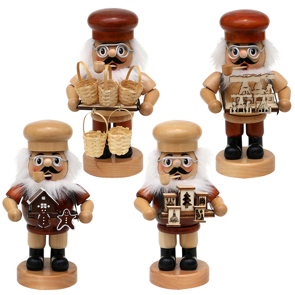 Wooden Smoking man "market trader with belly shop" nature 4-asst 9,5 x 7,5 x 16,5 cm