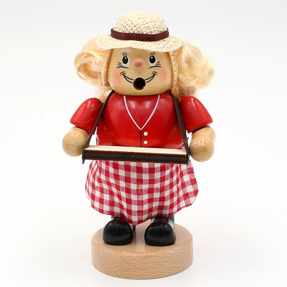 Wooden Red, medium-sized, belly-bound woman with a tray 8,5 x 7 x 14 cm
