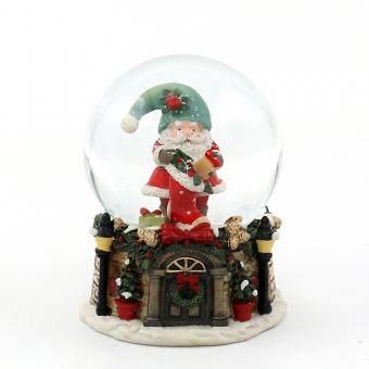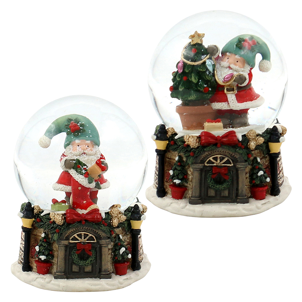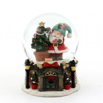 Polyresin Snow globe "Santa at the Christmas tree" on a Christmas-decorated base 2-asst 7 x 7 x 9 cm Ø 6,5 cm