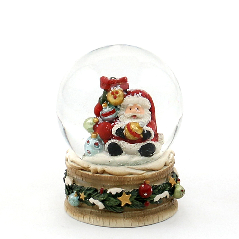 Polyresin Snow globe "Santa Claus on a Christmas tree with baubles" on an elegantly decorated base 10,5 x 10,5 x 14,5 cm Ø 4,5 cm