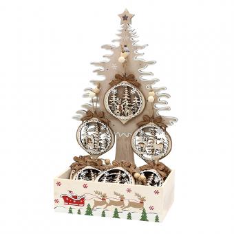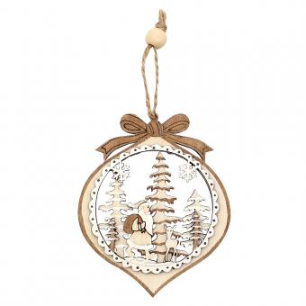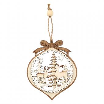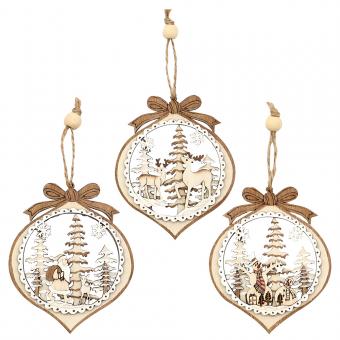 25pcs set Wooden Decorative pendant “drops” including display white / natural 3-asst 17,5 x 11,5 x 32 cm