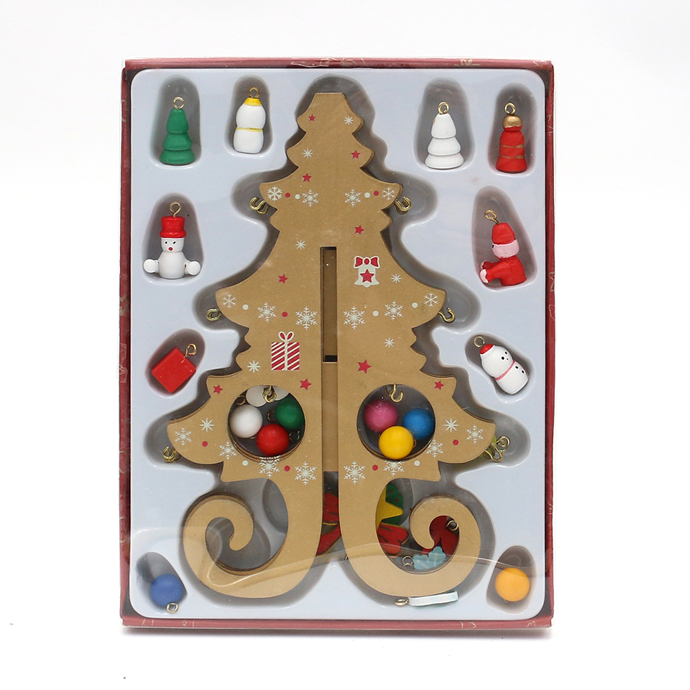 28pcs set Wooden Golden fir tree 20 cm with colorful tree ornaments 14 x 18,8 x 1,5 cm
