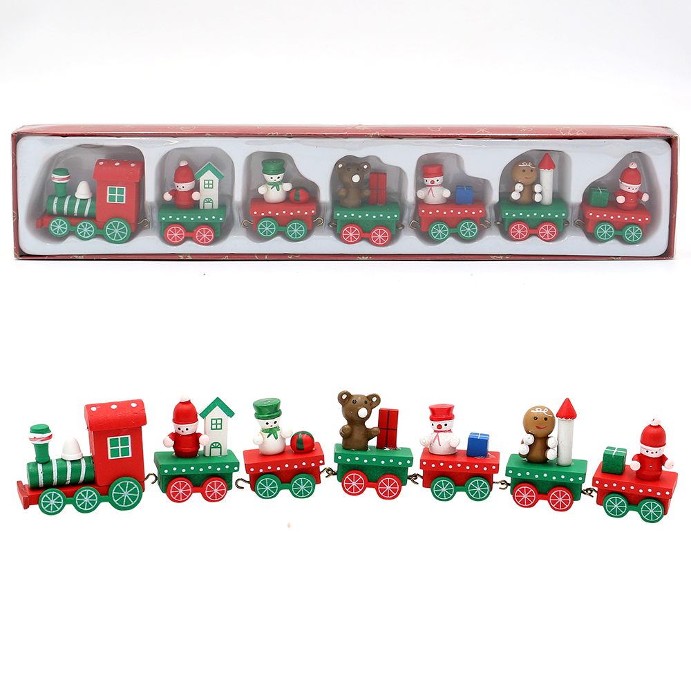 7pcs set Wooden Colorful train with carriages and figures 35,5 x 7,5 x 2,5 cm